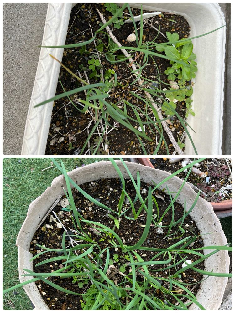 まだ細いけれど、ニラは今年も食べられそうです。