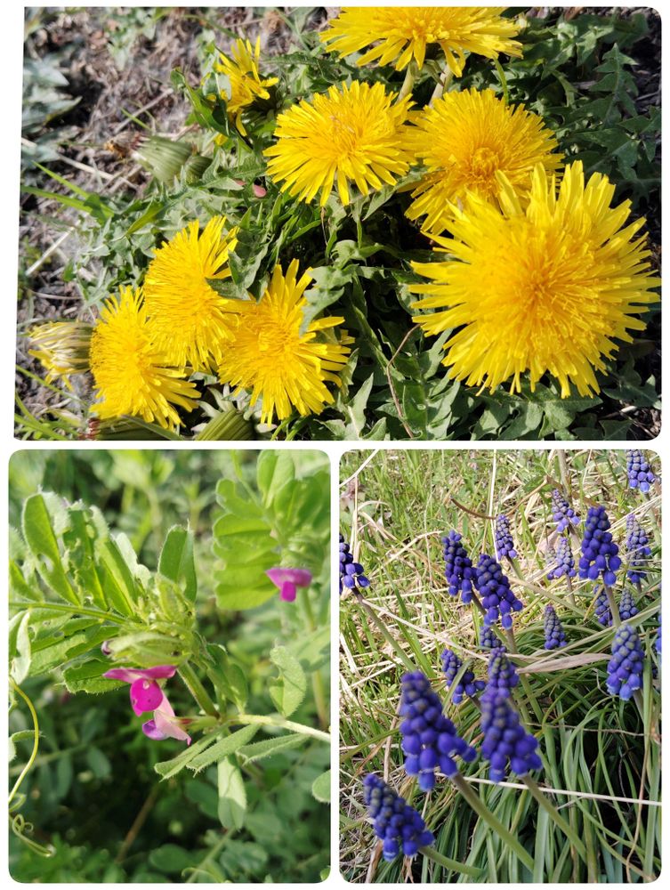 5 たんぽぽ、カラスノエンドウ、ムスカリも咲いていました