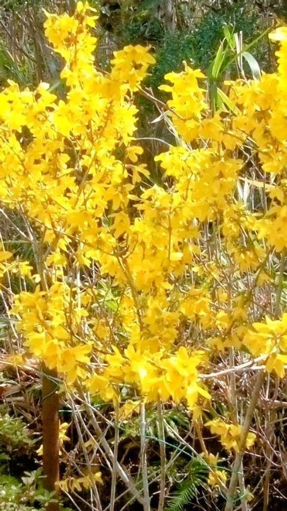 庭のレンギョウ,☀️風が冷たい,今日は10度です。の投稿画像