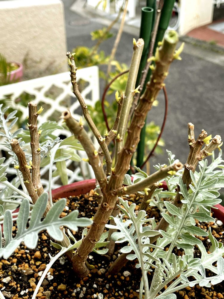 寒暖差により葉が枯れ剪定したけど 無事新芽🌱らしきものがෆ̈