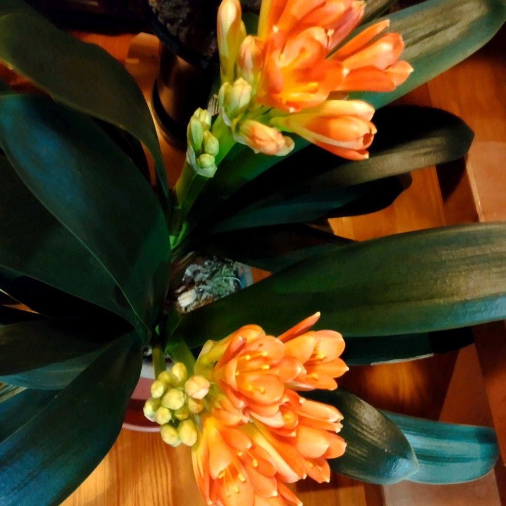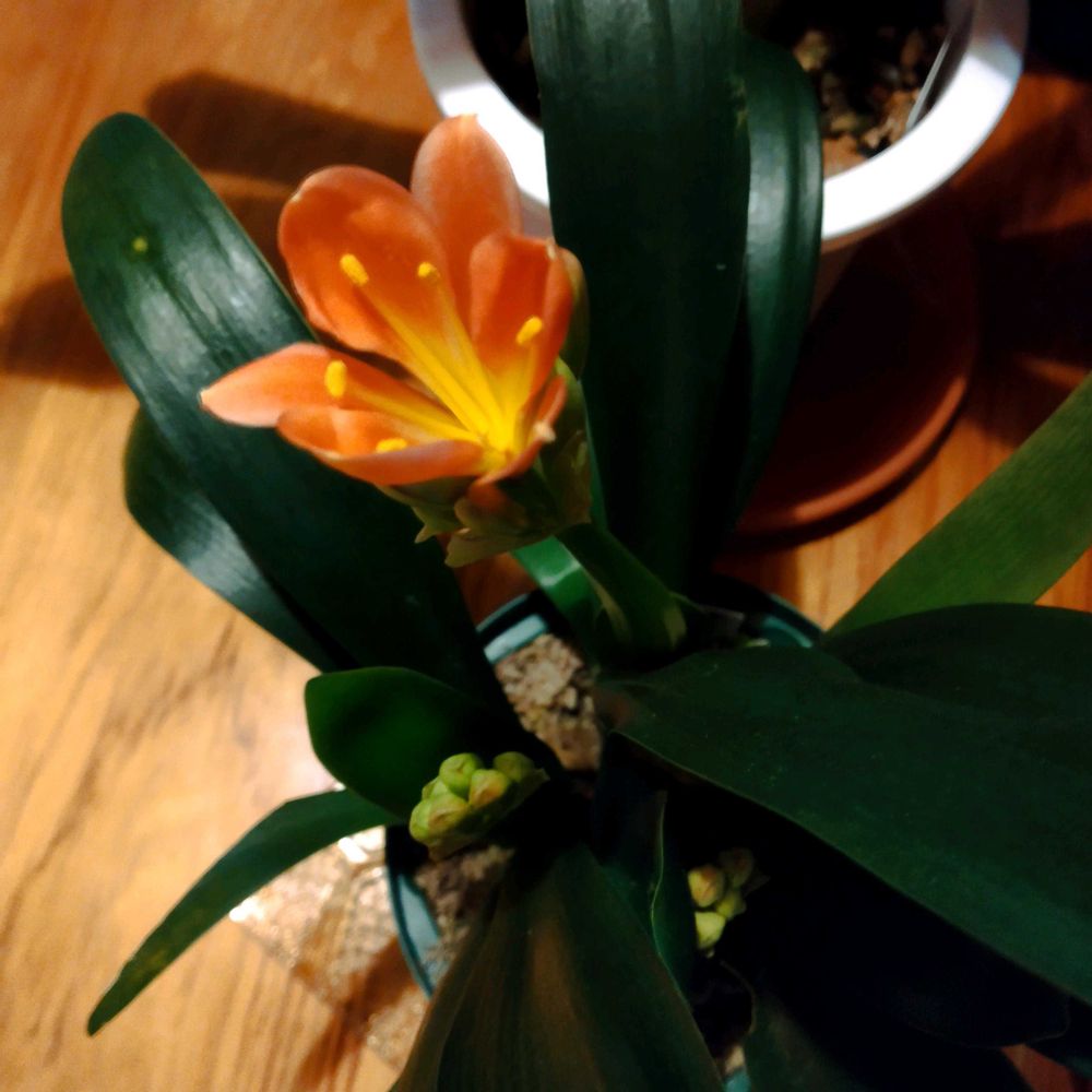 今日のお花が君子蘭ということで急いで暗い玄関で撮ってきました