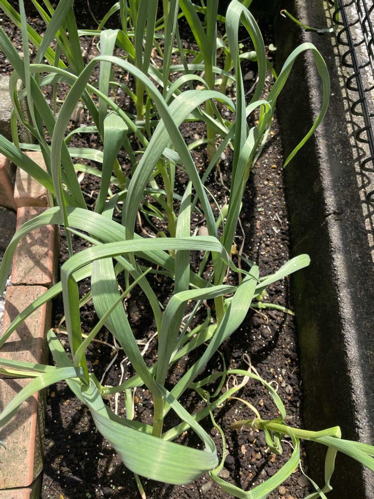 この葉っぱが枯れ始めたら…?デカい🧄が大量収穫ですわ