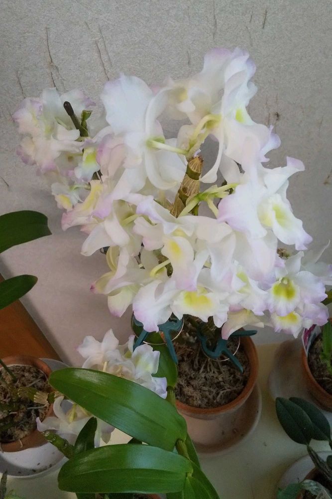 薄桃色入り白花デンドロビウムが満開です