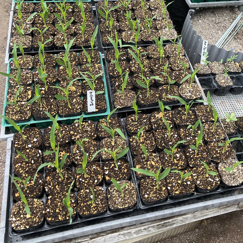 トウモロコシ🌽、ミニトマト🍅、花🌺などです。