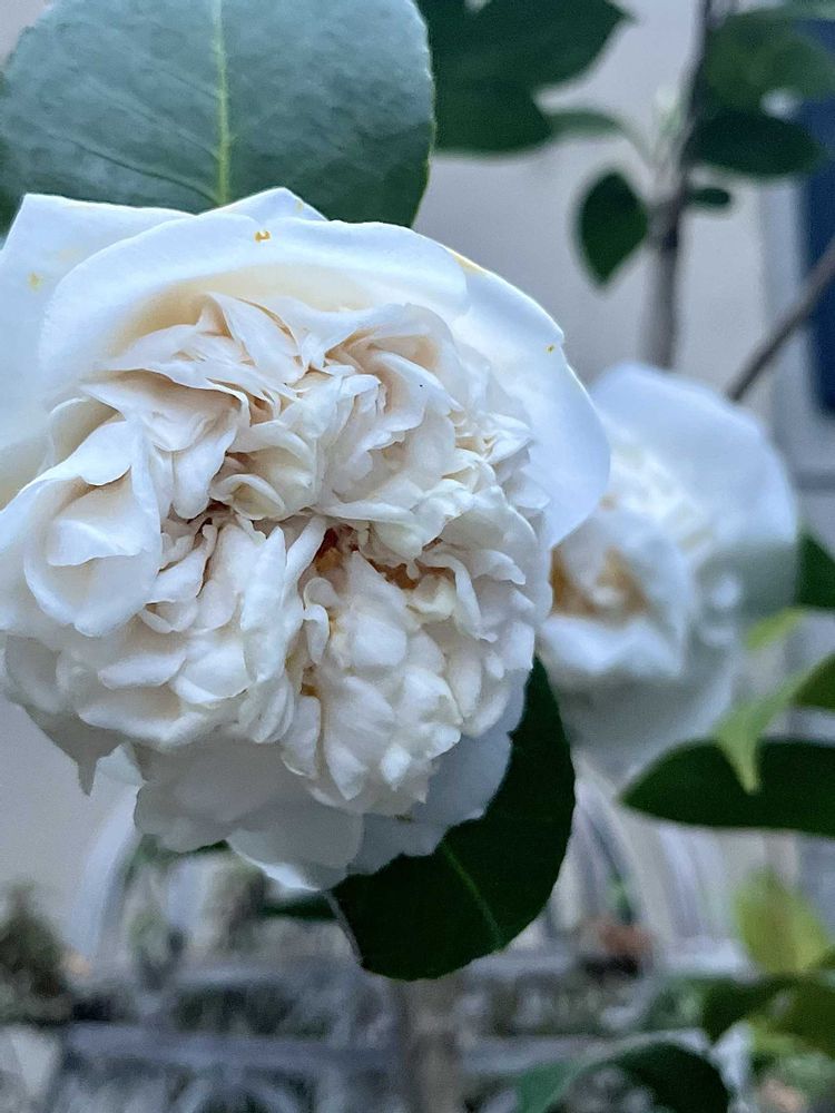 庭の椿の中で1番ながーく咲き続けてくれる、お気に入りの「雪灯籠」🤍蕾があっても一気に咲かずに、ぽつりぽつりと丁寧に時間差でゆっくり咲いてくれます( ◜ω◝ )✨