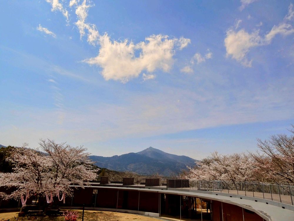 ここはフラワーパーク内の頂上にある円形コテージの展望スペースなのですが…大好きな筑波山と🌸🌸が見える癒しの場所です😊✨