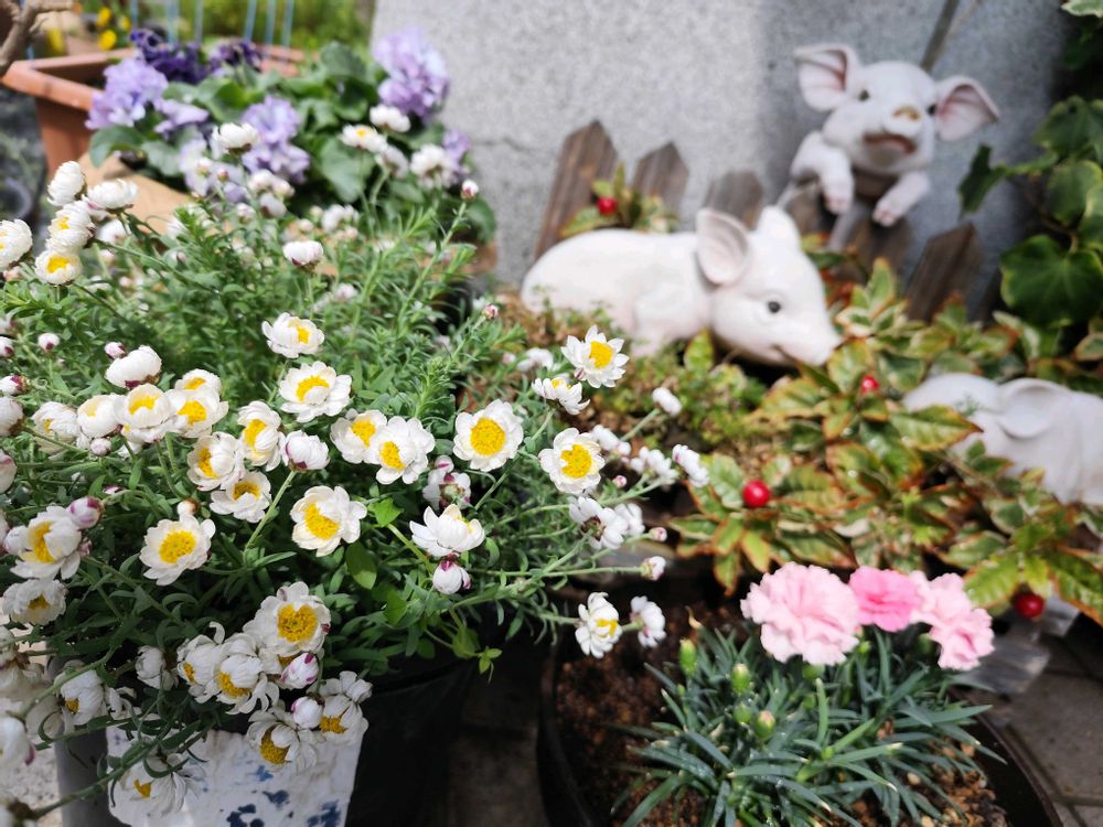 小さな庭先で、お花を楽しんでいます。一人暮らしはさみしいですが、お花に元気をもらってます!