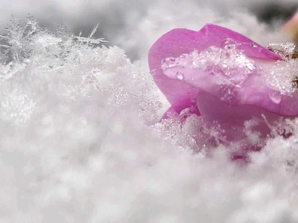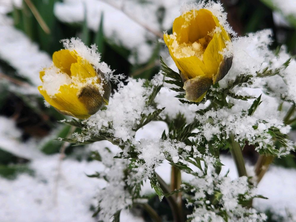 薄紫色💜も咲いていますが雪❄にはびっくりしたでしょうね