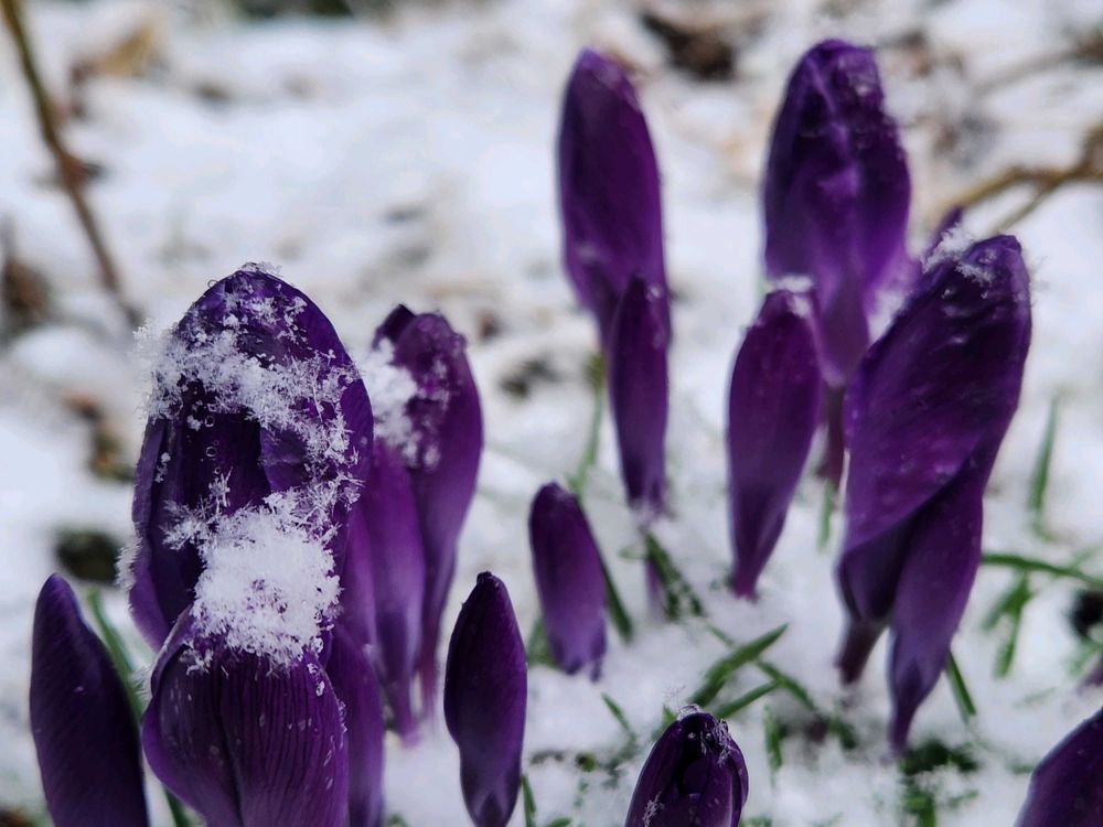 こんにちは😊クロッカスたくさん咲きましたね💕雪がかかって寒そうだけど今日は晴れ😊