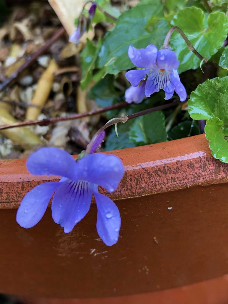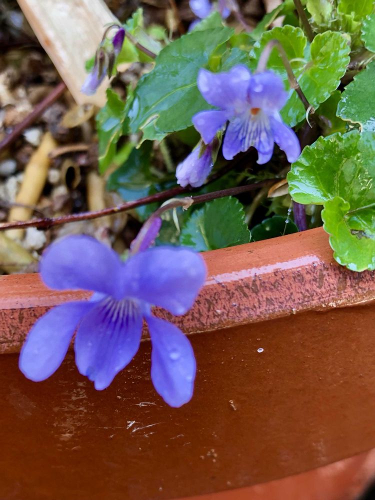 近所の花友さんからプレゼントされた植木鉢にはこの可愛いスミレさんが少しずつ咲いていました♪(๑ᴖ◡ᴖ๑)♪💙💜