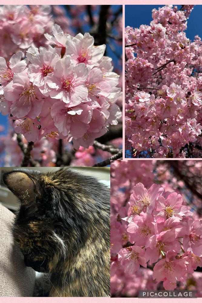 河津桜🌸は少し前に近くの河川敷と少し遠出して伊勢崎の公園をはしごして、ごめん寝くーちゃん🐱を桜🌸まみれに🤣🌸