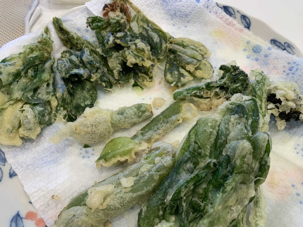 そら豆の芽、ネギ坊主を天ぷらで食べました😋美味しいですよ