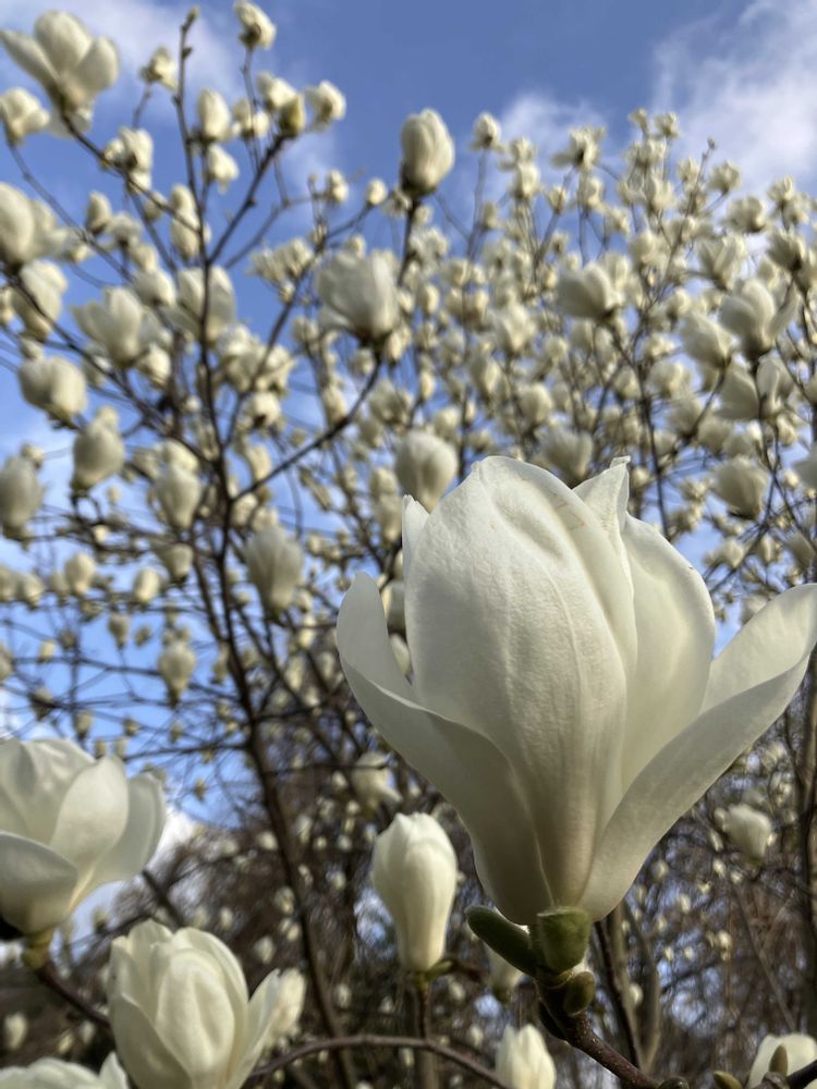 ハクモクレン。いっせいに咲さく大きな花は迫力があります。真っ白なシャツのような白さが爽やかでした。今日から新しい週が始まります。ご健康をお祈りします🤲