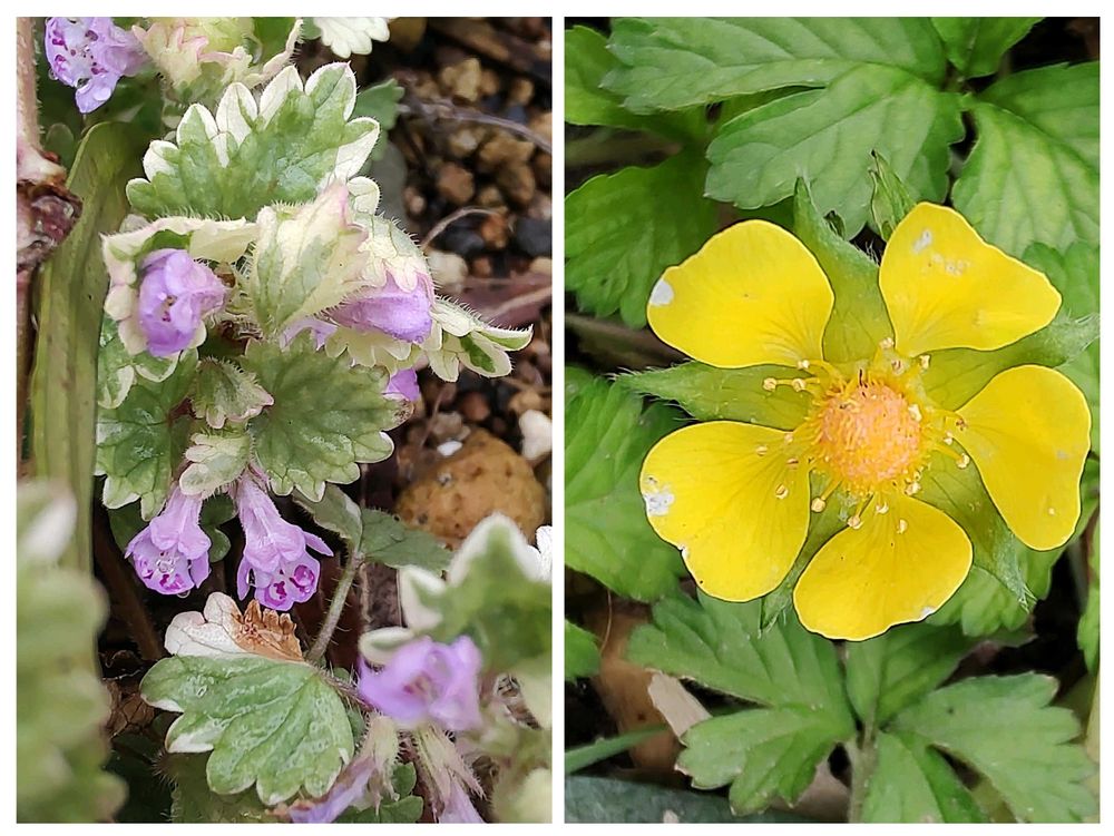 1枚目 グレコマとヘビイチゴ 小さな小さな花が咲き始めたよ しばらくは庭のグランドカバーになってくれます☺️