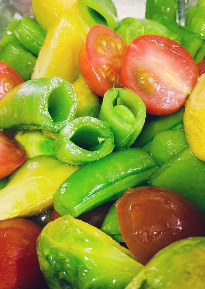 シャキシャキ歯ごたえを感じられる程度に下茹でしたスナップエンドウマメに、コンソメで蒸し煮した芽キャベツ、ミニトマトを白バルサミコ酢と蜂蜜、ハーブソルト、オリーブオイルでマリネした爽やかな簡単春サラダも作って美味しく頂きました~😋𓌉🥗𓇋✨️