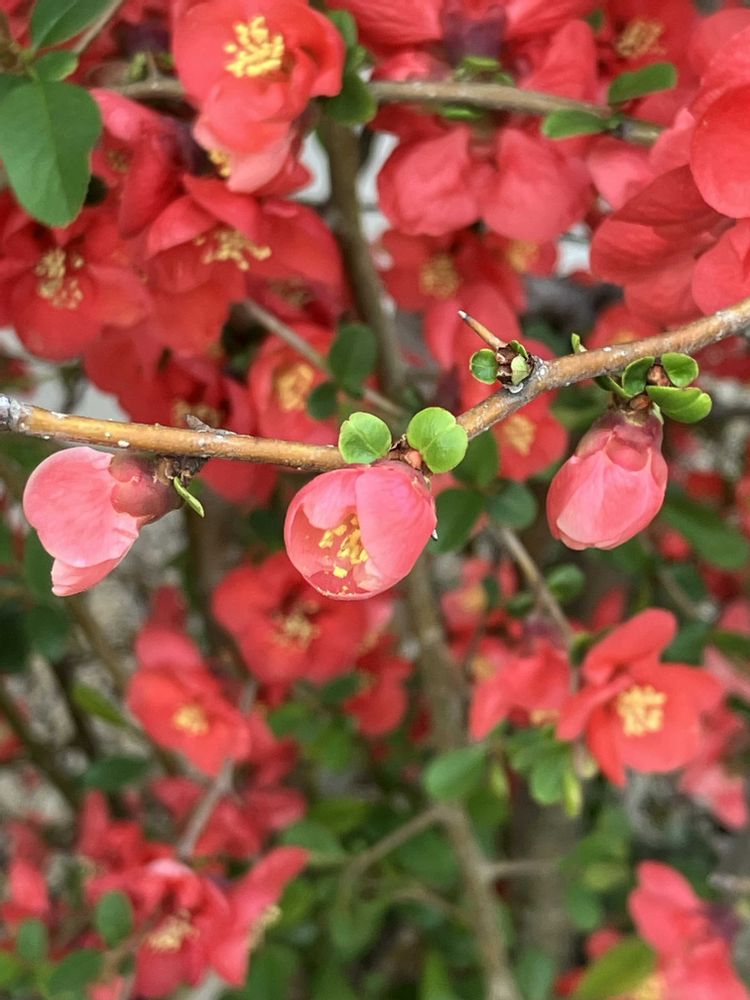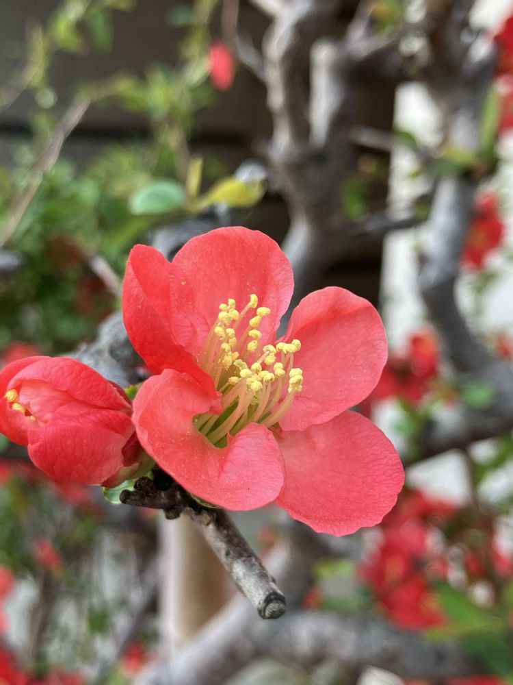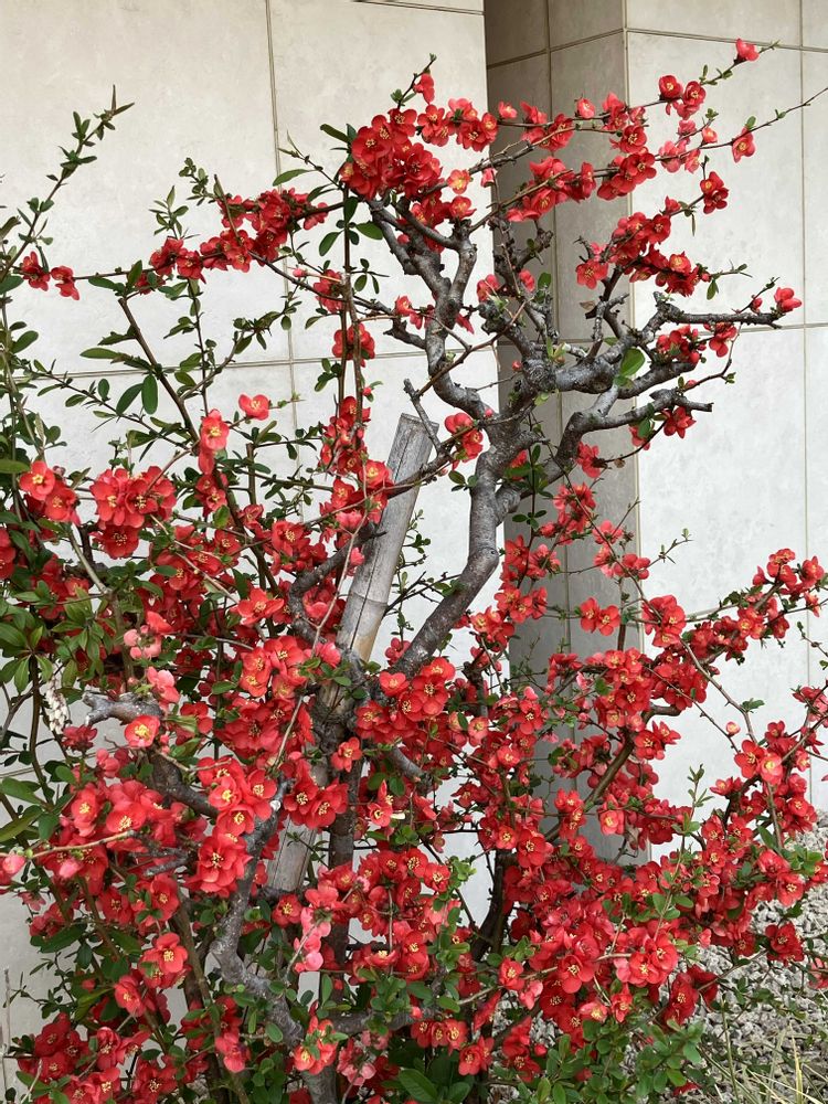 桜🌸の美しさに負けないくらいに木瓜の赤い花が鮮やか