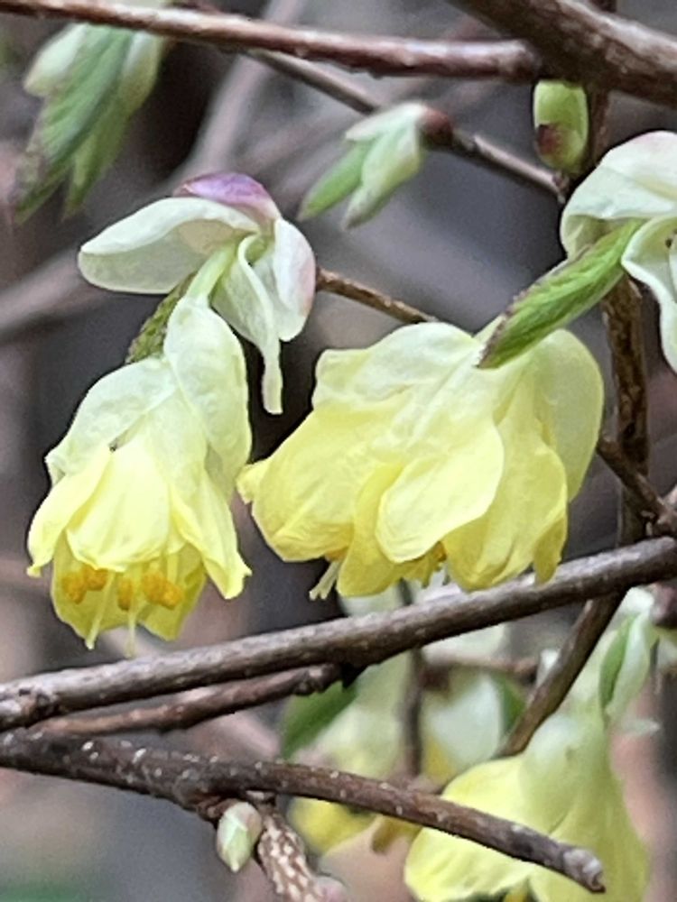 どちらも小さな花がいくつか集合してぶら下がるように開花しますが、ヒュウガミズキの花の数は