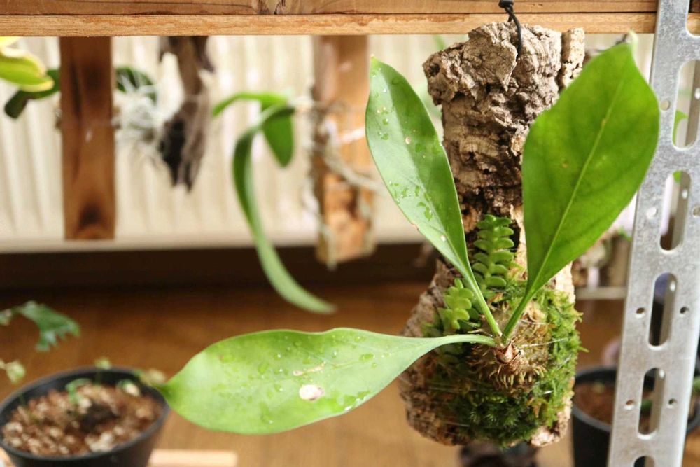 ぼくモル鉢に入れてましたが春も近づき着生して見ました…アングレカム(蘭)を添えて🤭
