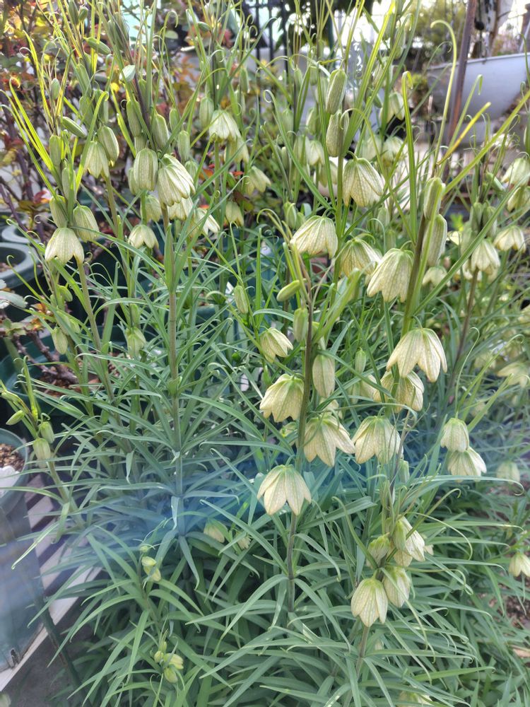 我が家のバイモユリみんな大株で咲いています。一株は欲しい人がいて差し上げたのですがその場所からまた芽が出て来ています。😆