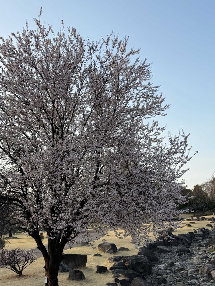 みらい公園に1本しかない、アカバザクラが見頃を迎えていました。