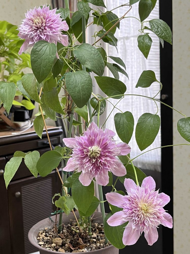 クレマチスさん🩷暖かいお部屋の中でのびのび咲いているんですね😊💕