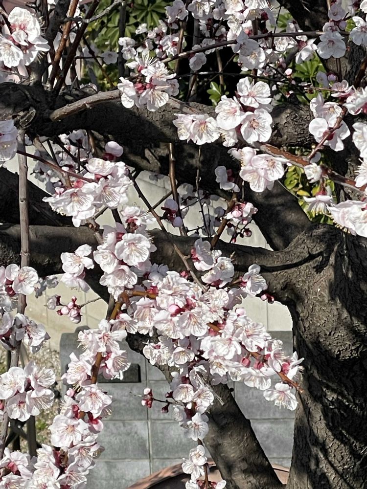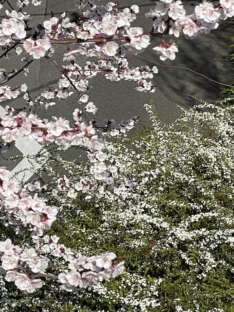 三枚目はアンズ単独、四枚目はユキヤナギとのコラボで💗🤍