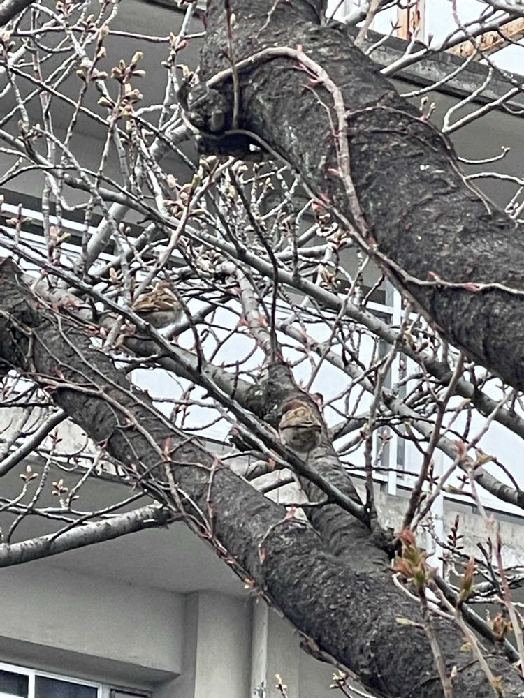 真ん中のスズメを中心に3羽に見えてきましたよ♡