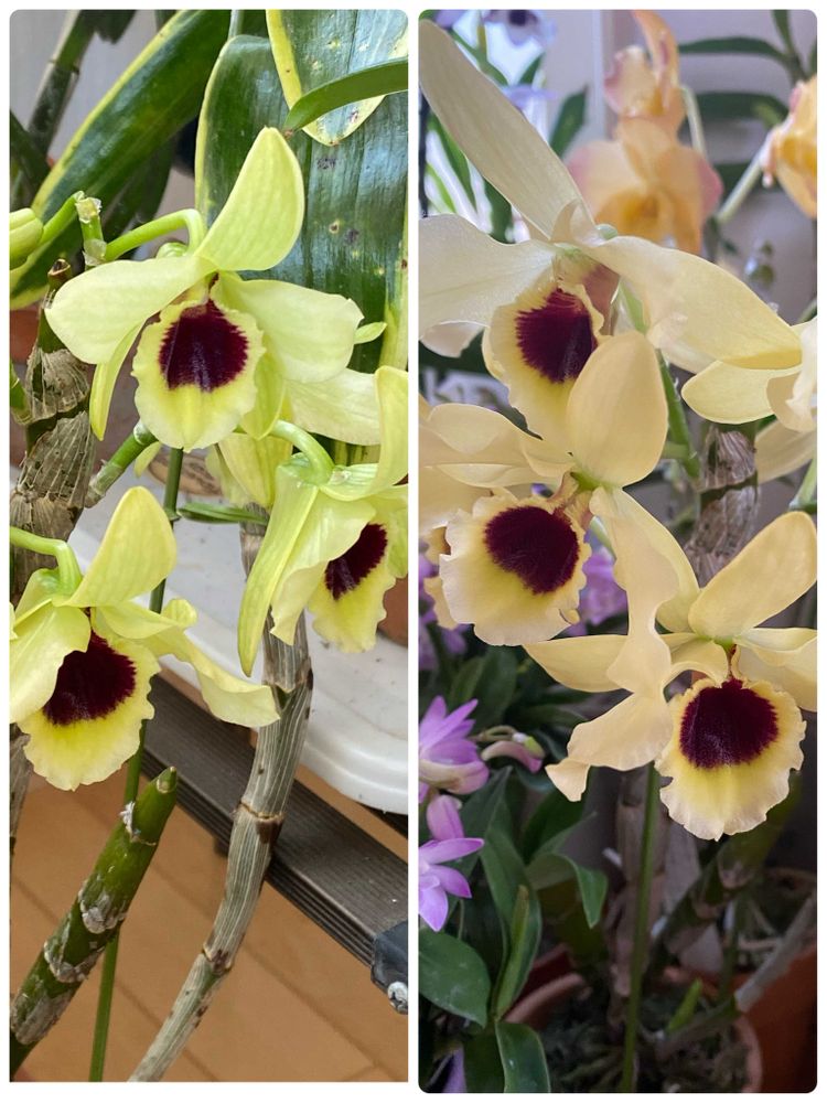 ④葉っぱが斑入りのデンドロビュームは咲いた時グリーンでしたがあっという間に黄色に色変わり💦