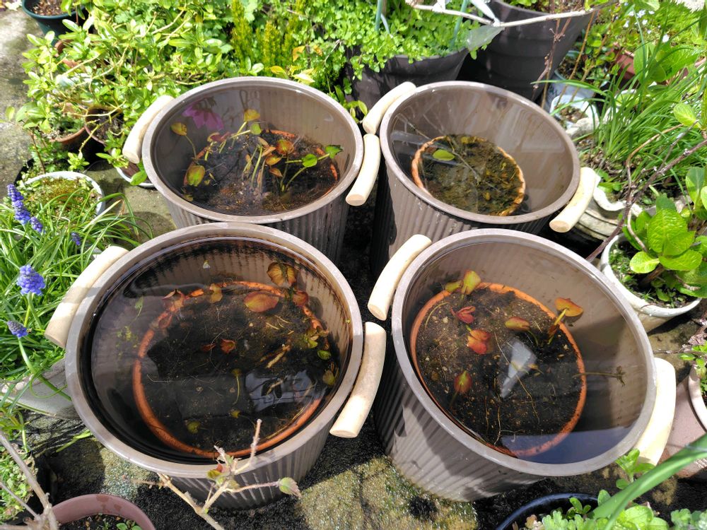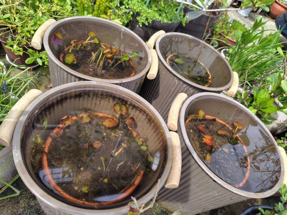 スイレン用の肥料を切らしてたので株分けせず、鉢を洗っただけです。