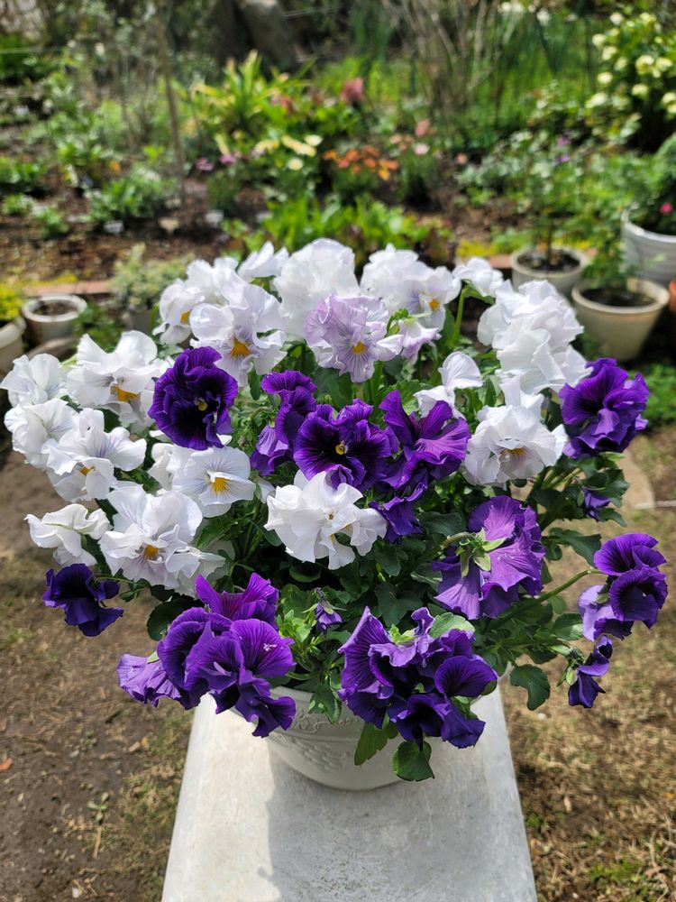 ❁絵になるスミレ✿❀2色の寄せ植え🪴フリフリでうつむき加減です✨