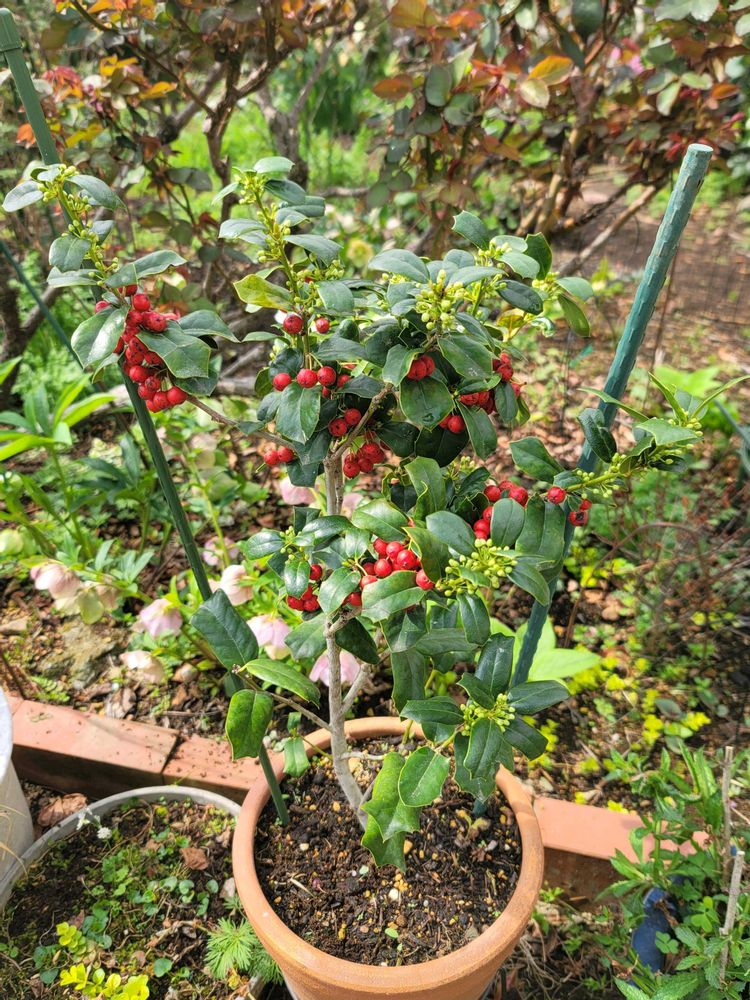 クリスマスホーリーも真っ赤な実が鮮やかで花芽も付いてきて楽しみですね🔴🌱