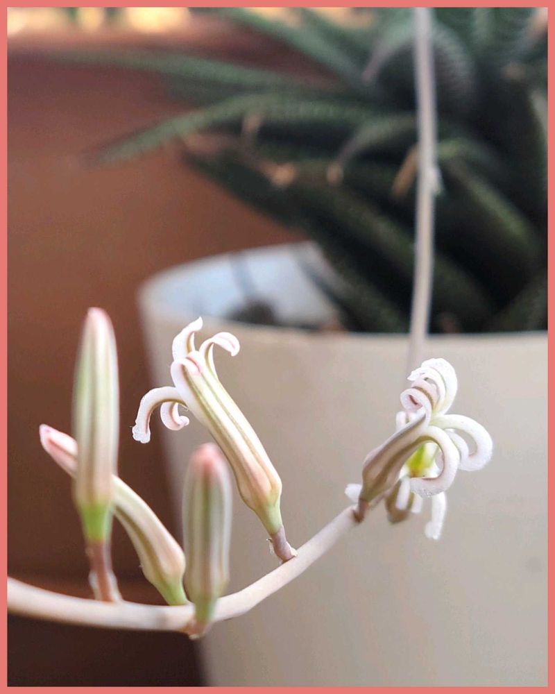 一昨年花友さんからいただいた鉢からニョロ~と伸びた蕾が開花しました😊👏👏