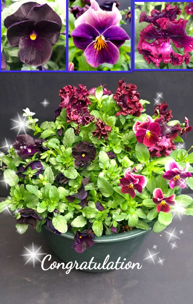 ①枚目…実物は、もっとダークなんですが、明るくしたら、ビオラ・パンジーも赤っぽく写ってしまいました🙏💜