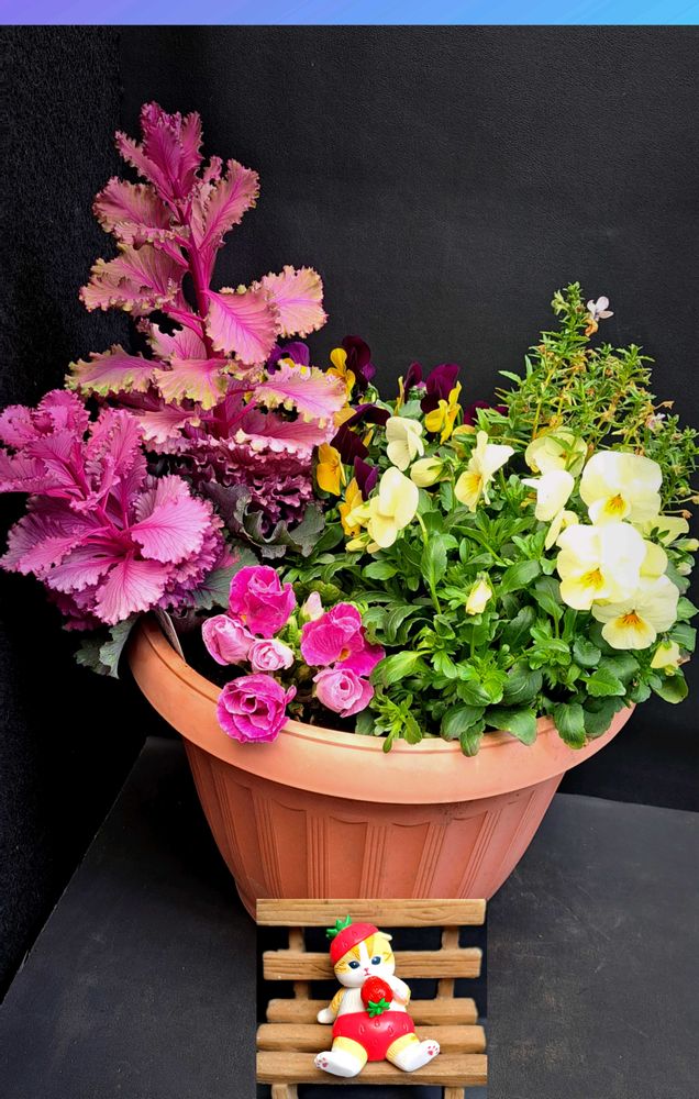 ②枚目…こちらも玄関先で咲いてるビオラメインの寄せ植え🎵