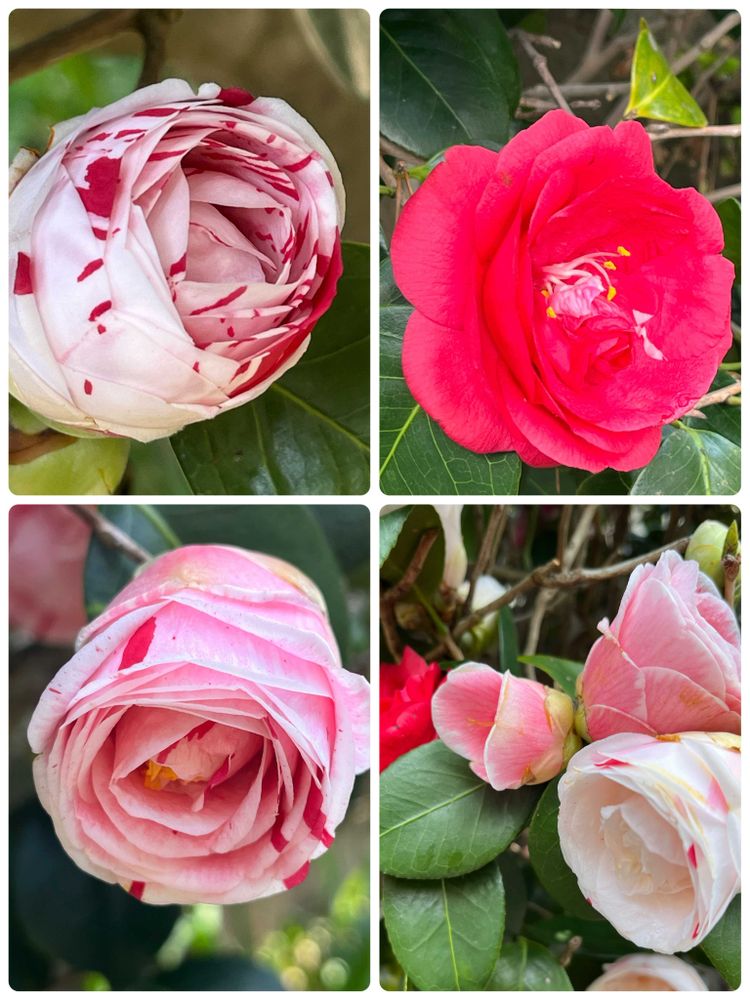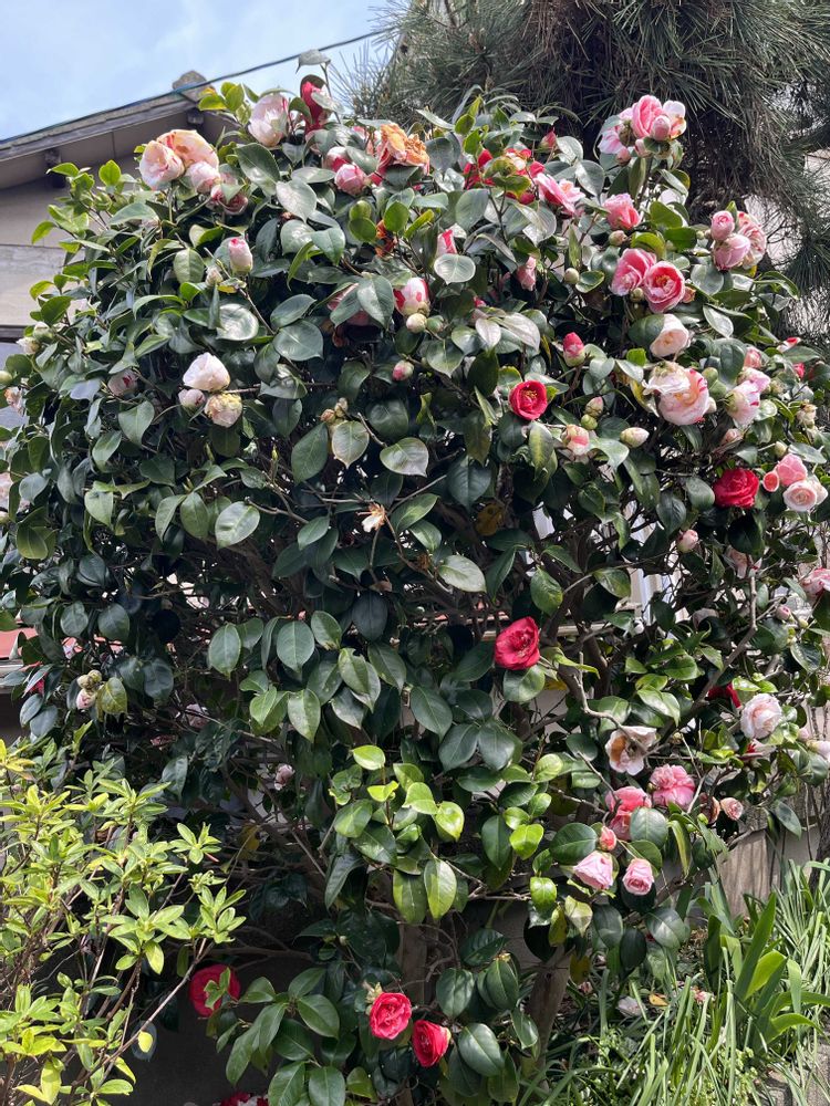 祖父が80年ぐらい前に植えた椿、途中からいろんな色が出てきました❤️💗🤍