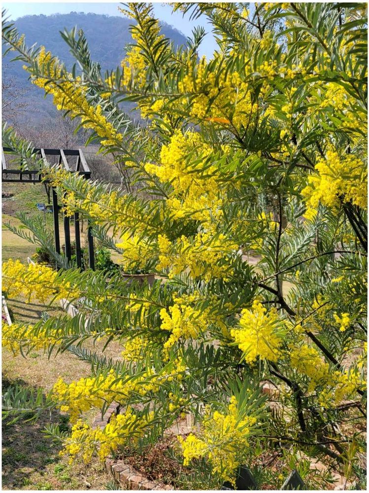 ミモザと同じような黄色い房状のお花を咲かせている植物に遭遇。