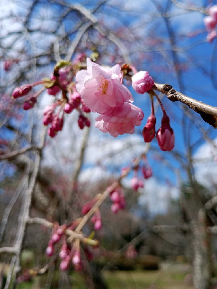 今朝は最低気温が表示📱0℃🌡️でしたが、肌寒いながら晴れ☀️桜加減を見に🐕️🐾👣散歩してきました。