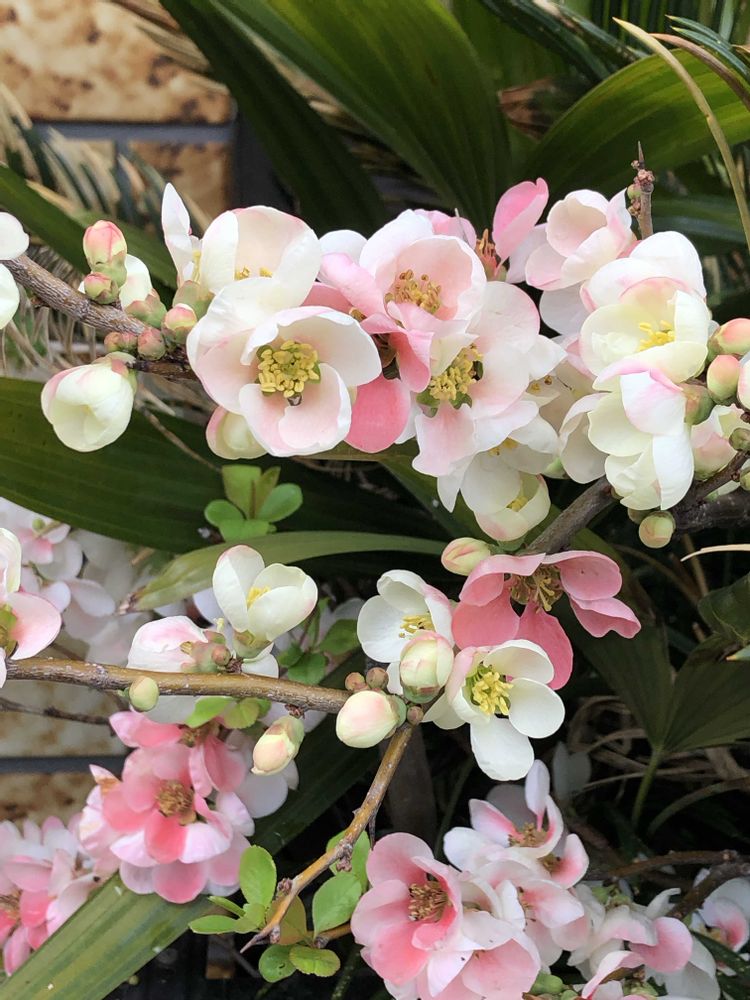 さん,こんばんは。"木瓜"に限らず,"梅"でも"桃"でも"椿"でも,一つの株に紅白や白ピンク,絞りなどが一緒くたになってる咲き分け品種は,大抵"思いのまま"っていう名前が付けられている様に思います😊