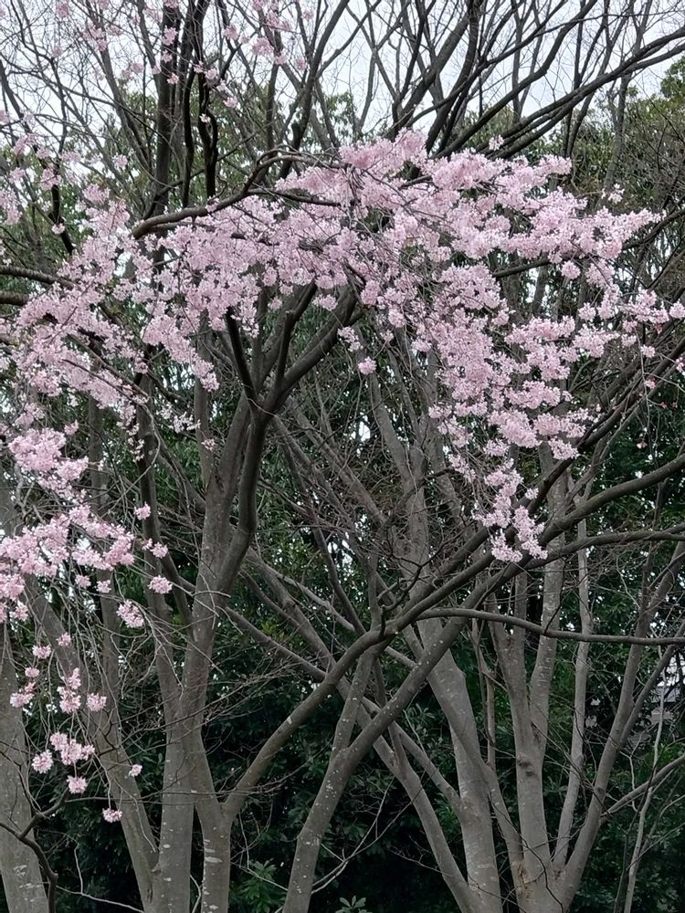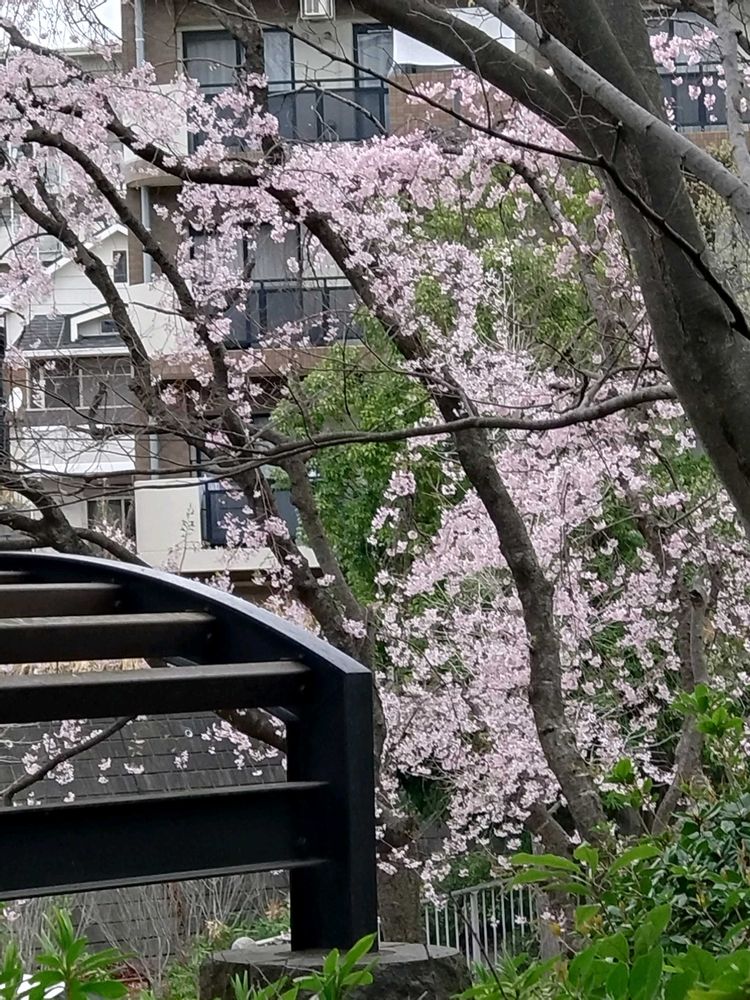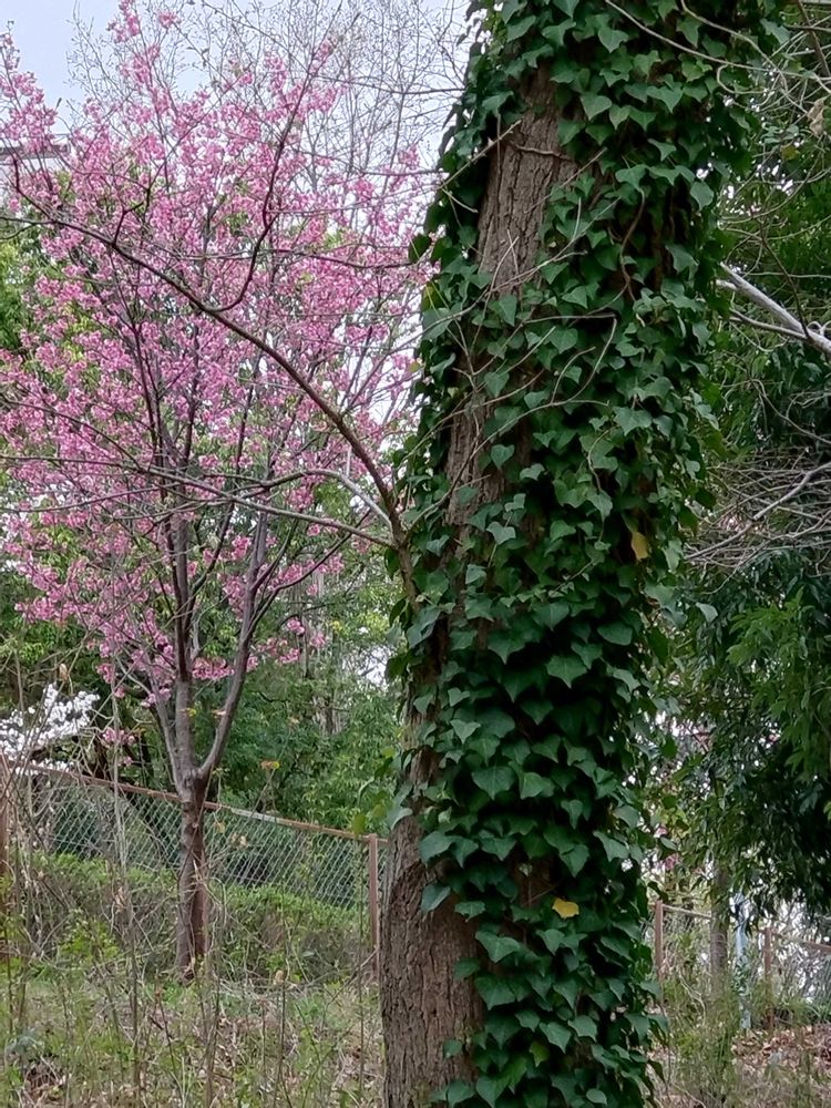 ❶〜❸歩道橋の斜面に咲いていた枝垂れ桜🌸🌸🌸青空だと一層素敵でしょうが木曜日まで雨予報なので今日がチャンス👌❹桜🌸とツタ💚の素敵なコラボ