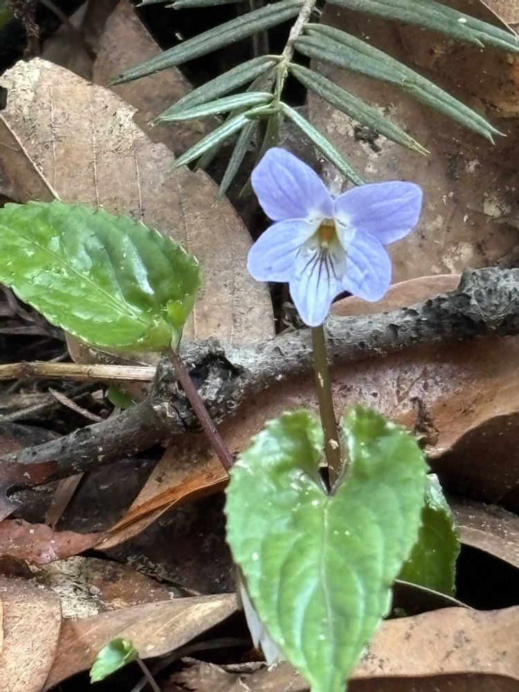 この日1番沢山見かけたスミレはナガバノスミレサイシン。花色は淡くバリエーション豊かです。ちなみに高尾山には白っぽいものが多いそうです。