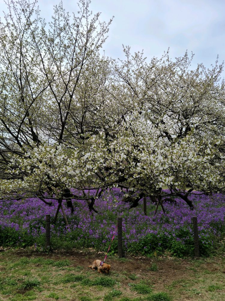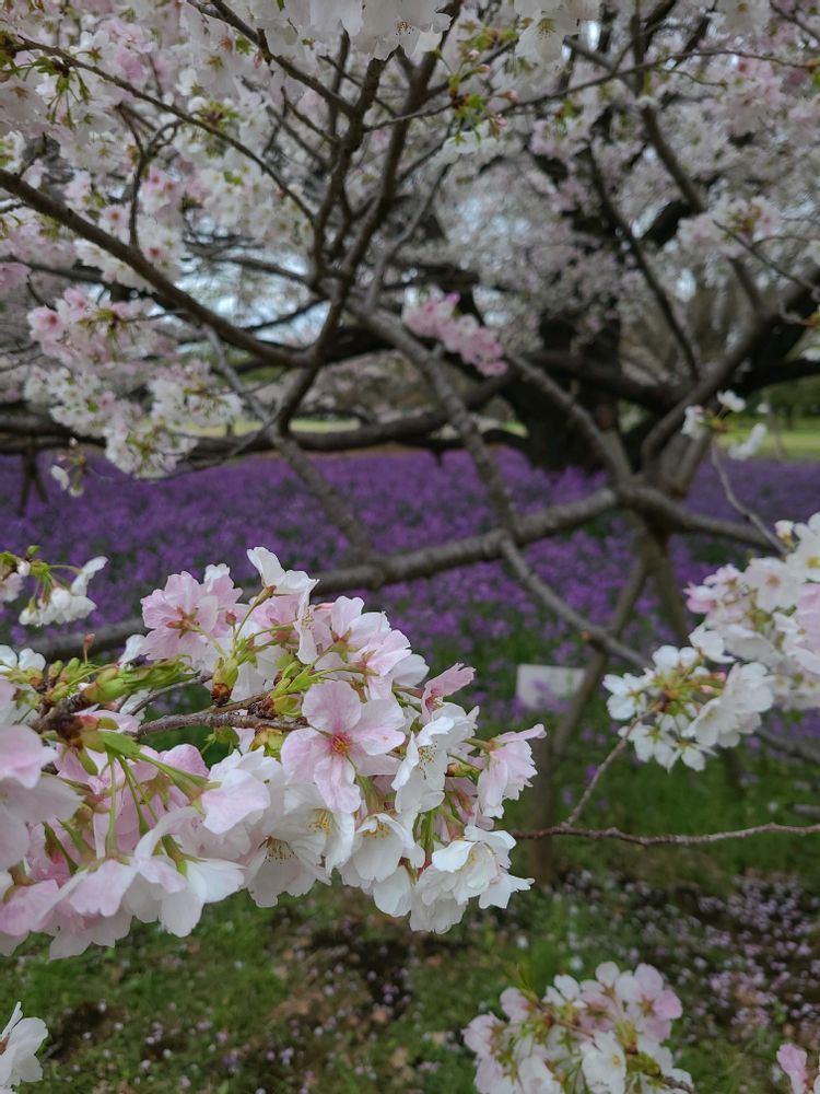 大島桜なんですね。奥に🩷の帯が広がってて素敵です。
