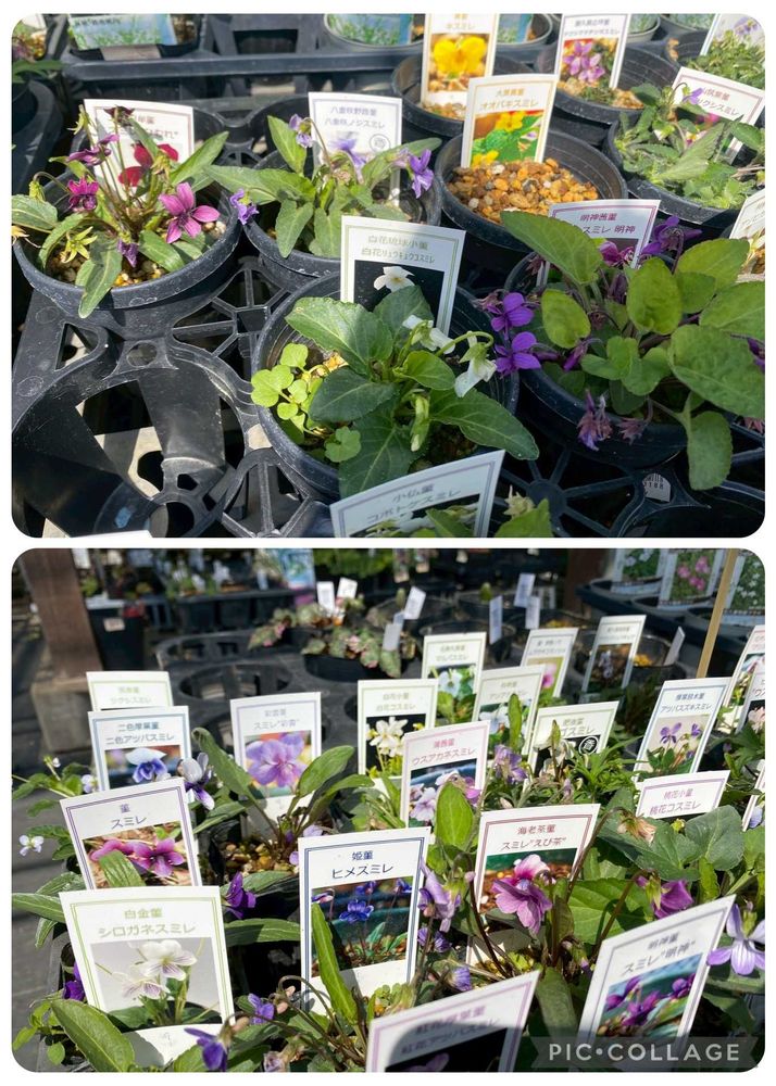 👩🏻ここ、凄いんだよ❣️ ちゃんと花が咲いてるスミレが売ってるんだよ