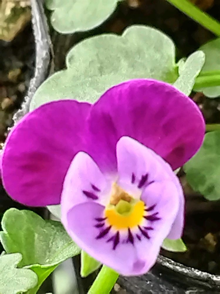 ⚛️ポットの中で咲いていた、種まきからの第二号ビオラ!