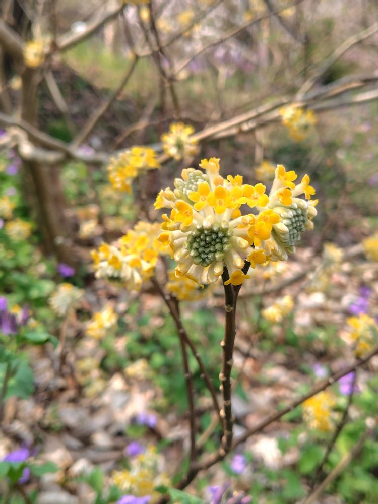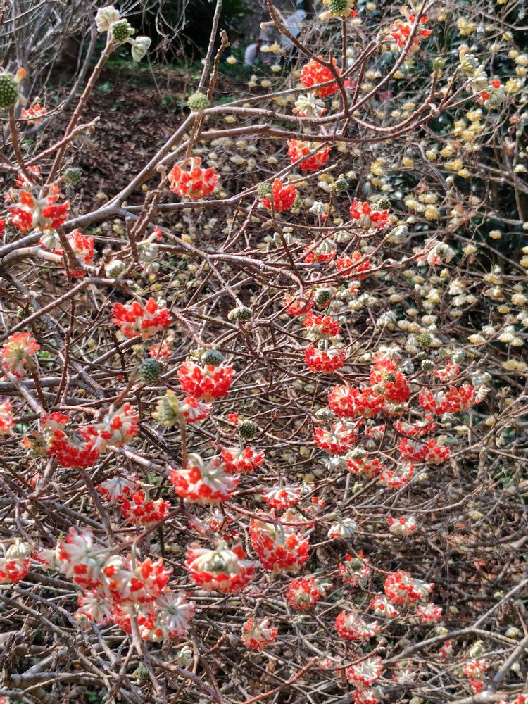 城山カタクリの里に沢山咲いていました‥朱色のミツマタも可愛いですね〜
