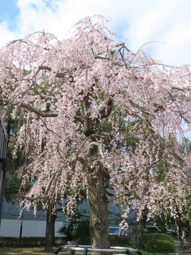 市内を流れる旭川沿いでは染井吉野はまだ3分咲きでしたが、枝垂れ桜が満開で美しい姿を見せてくれました(①)。
