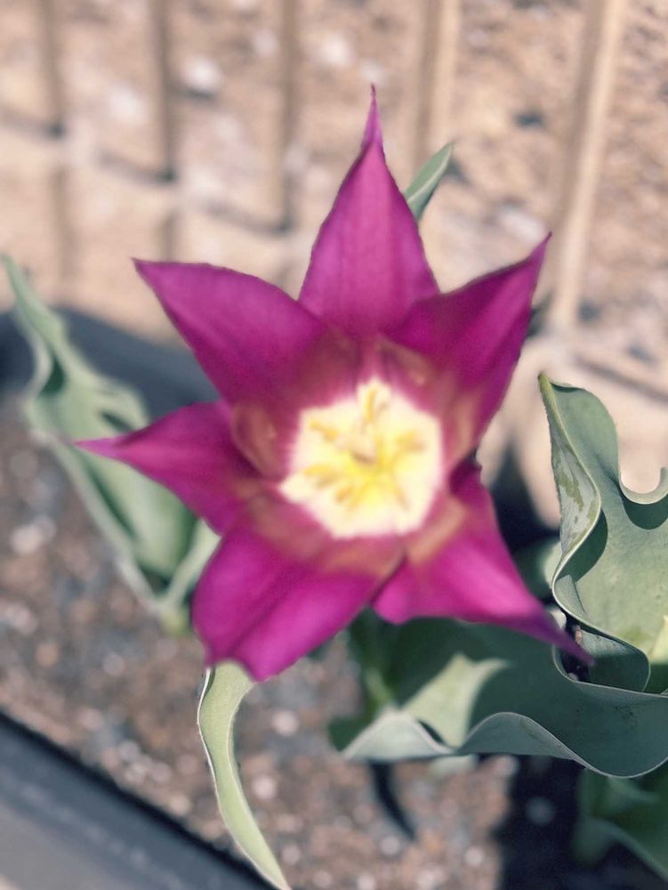 なんと、初めてのチューリップ咲いた!あったかいのかなぁ??