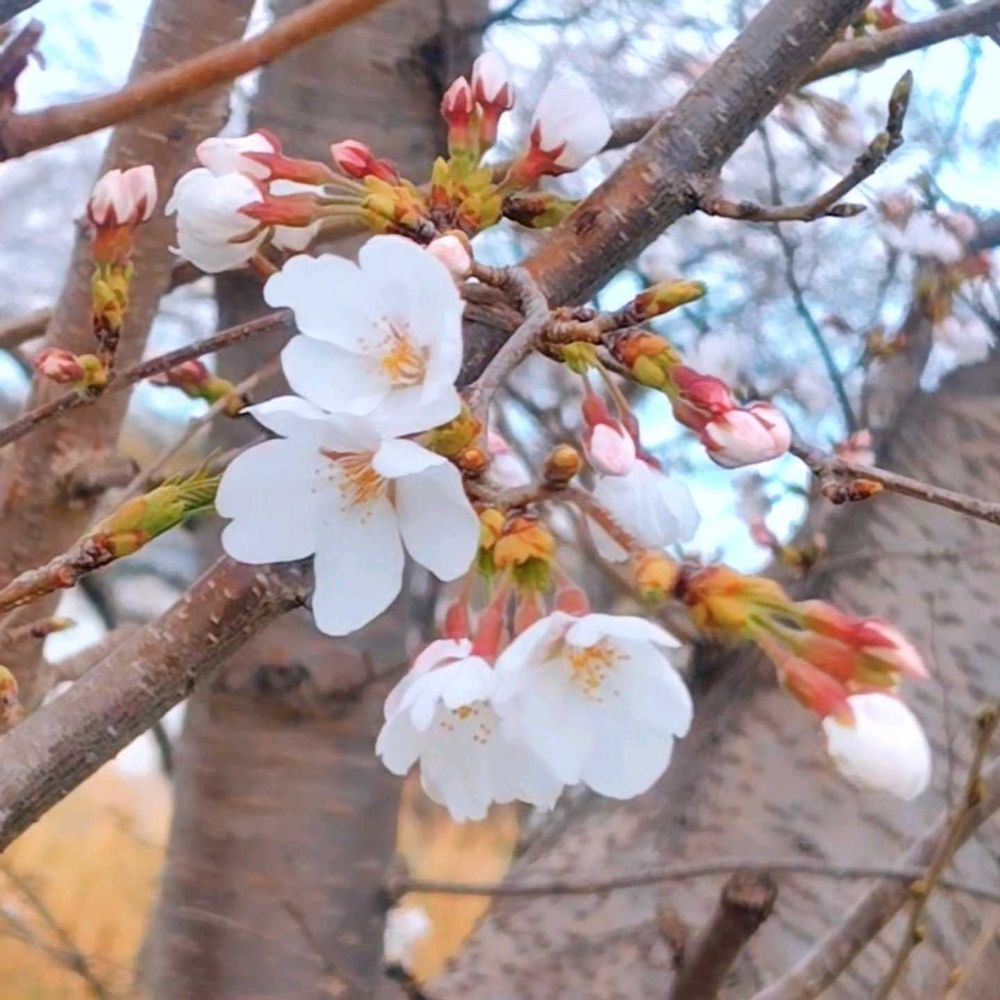 花冷え花曇りの中、酒蔵さんの土手を上がると綺麗な🌸並木。
