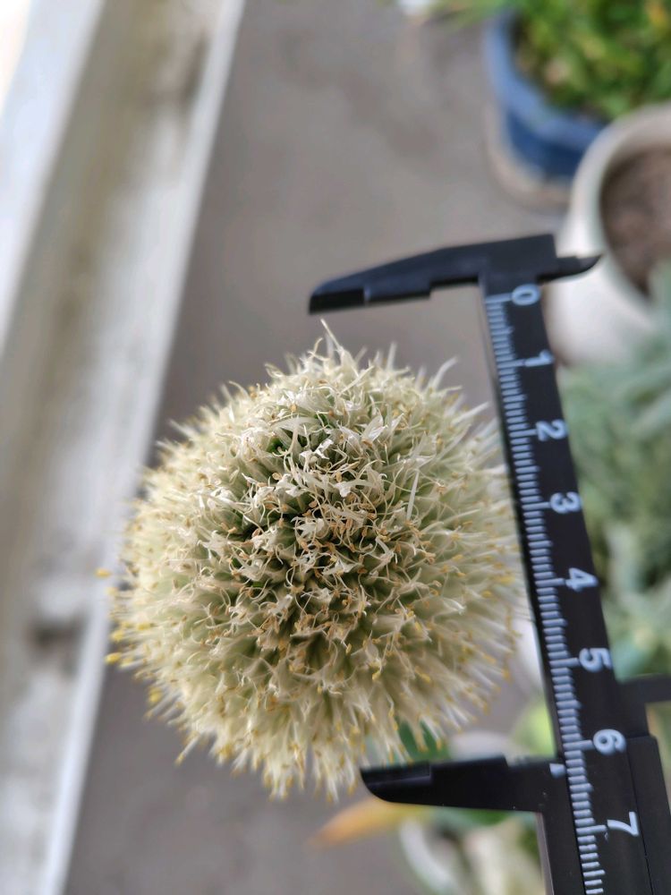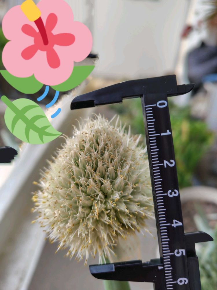 咲いたネギ坊主を横から見たものです。あまりにも大きいので、ノギス📏も一緒に撮影です。