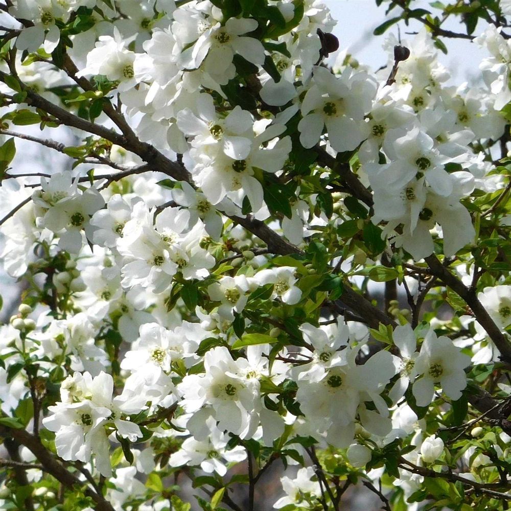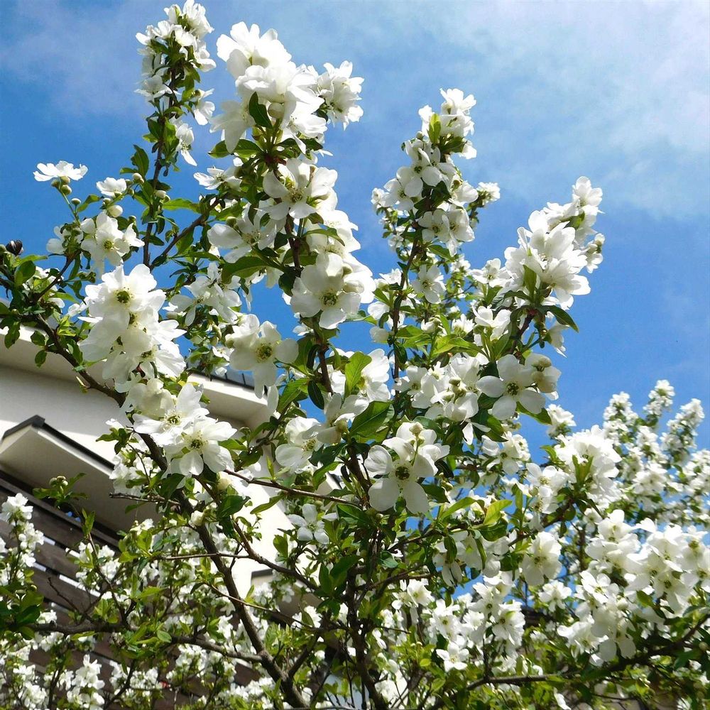 梅に似た形の花の色の白さ🤍が際立っています🎶