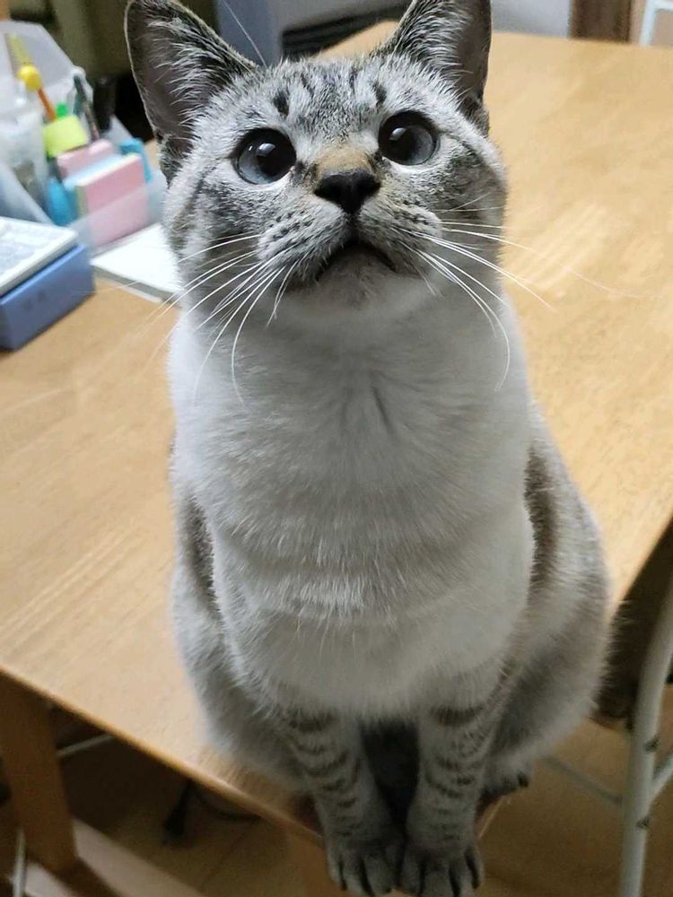 🐈シロちゃん💓こんなかわいいお顔で催促されたら、おやつ何回でもあげてしまうー🥰